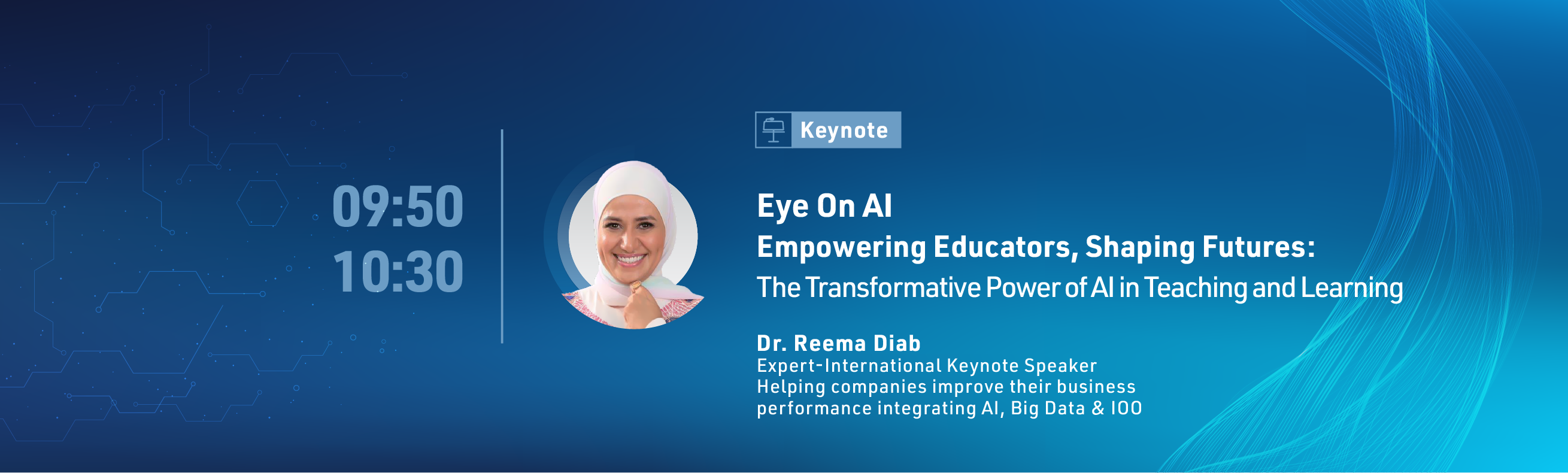 The second keynote, "Eye On AI: Empowering Educators, Shaping Futures", will be presented by Dr. Reema Diab,