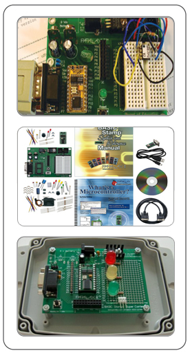 Components Used: Basic Stamp Discovery kit from Parallax Combined with Board of Education platform and the What's a Microcontroller Parts and Text Kit, "Getting Started" kit for microcontroller programming and experimentation.